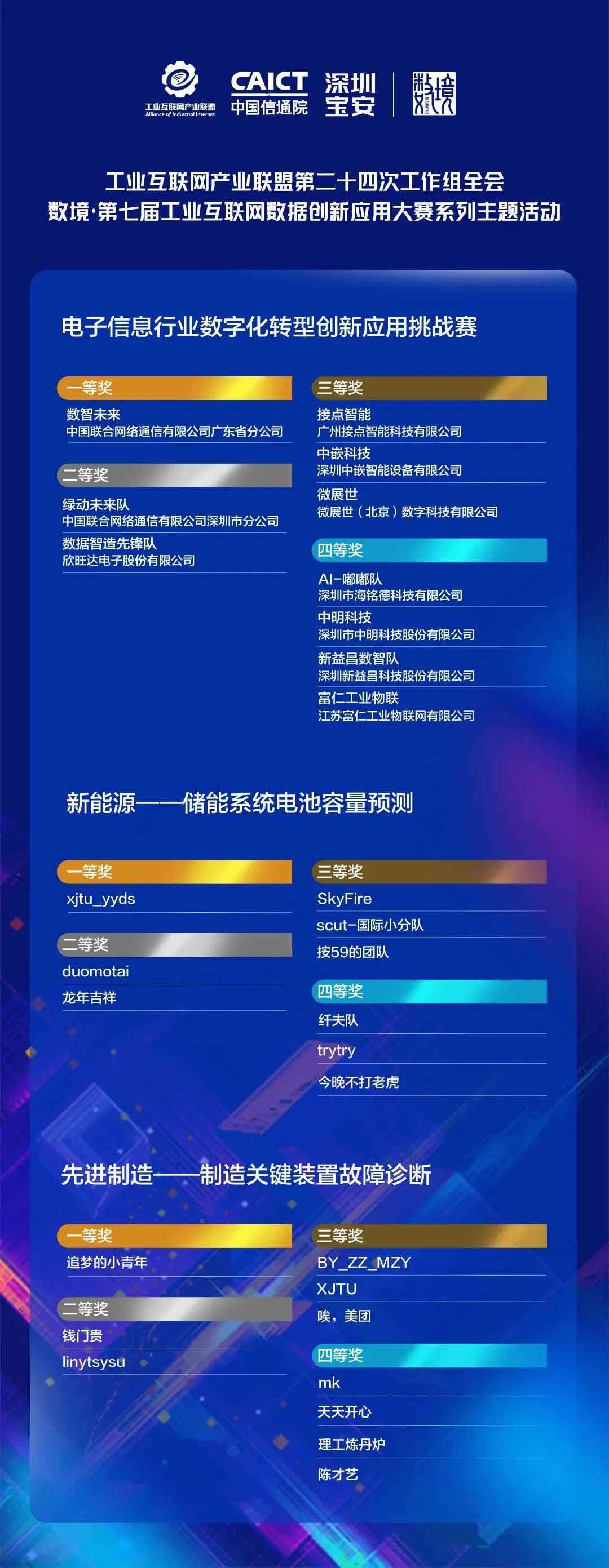 數(shù)境·第七屆工業(yè)互聯(lián)網數(shù)據(jù)創(chuàng)新應用大賽啟動以來,共有3000余支隊伍展開激烈角逐,涌現(xiàn)出了一批創(chuàng)新驅動力強、價值成效顯著、市場前景廣闊的優(yōu)秀項目。在決賽答辯現(xiàn)場,20位來自產學研各界的專家組成答辯委員會,對競賽選手的方案匯報打分,決出最終獲獎名單。中明科技“半導體與集成電路行業(yè)環(huán)境智慧化解決方案”榮獲電子信息行業(yè)數(shù)字化轉型創(chuàng)新應用挑戰(zhàn)賽四等獎